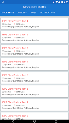 Exams: Appear for various mock Tests of various entrance exams related to banking available in both Hindi & English.