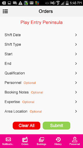 • Order - New bookings can be entered in just seconds. Plus by clicking on the optional ‘Personnel’ field you can
