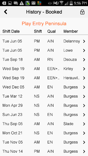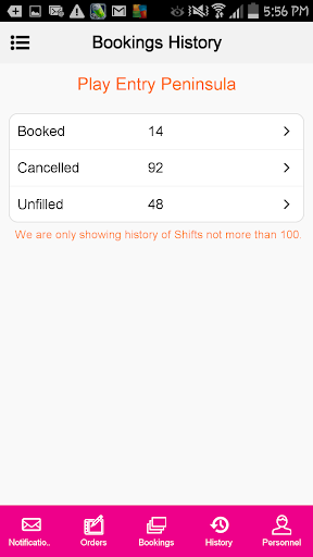 • History - View summary of previously Completed & Cancelled Shifts.