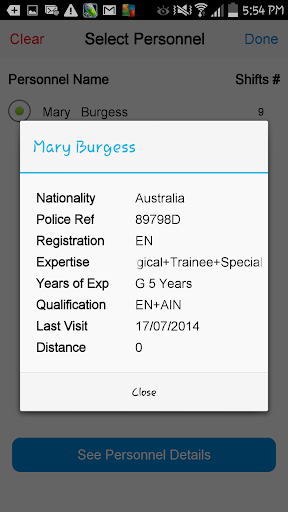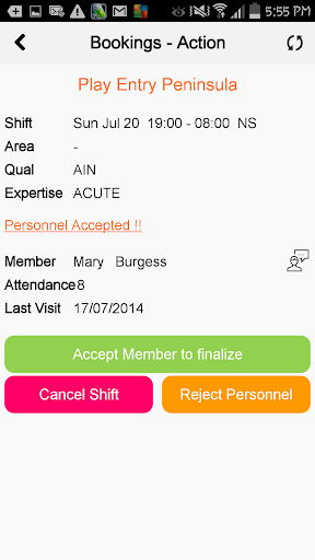 • Booked (Shifts) - View the current status of your Bookings, Confirm or Decline personnel offered, plus Cancel