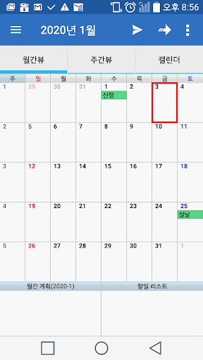 You can manage meeting schedules with friends and the work schedules of your company business. You can input monthly and weekly plan at special month or week number and manage that.