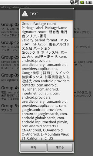 実際の利用状況はAndroidManifestを確認する必要がありますが、簡易的に「このアプリAとアプリBは同じ署名を利用したグループなのか」「このアプリCとアプリDは同じshareUserIdなのか」と判断する事が出来ます。