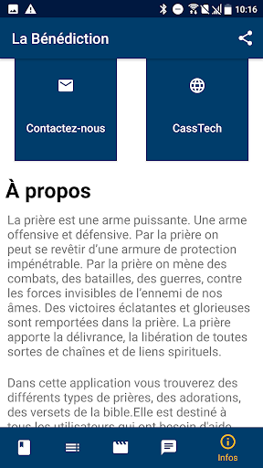 vous trouverez des différents types de prières, des adorations, des versets de la bible. Elle est destiné à tous les utilisateurs qui ont besoin d'aide spirituelle à un moment donné."