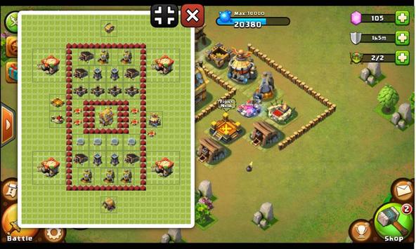 Many database designs, with selector and type of town hall. Also, you can see the selected design within the game, with a fully resizable floating window, to copy it easily, without using another device to see.