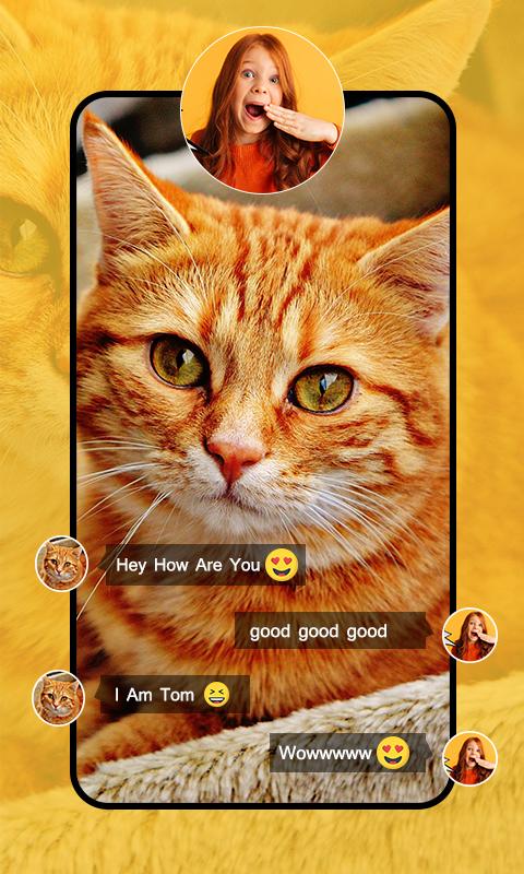 Cat fake video call Cat Video call Game prank cat video call is not real it's only for entertainment for friend. simulate cat fake incoming call from cats. Naughty Cats Calling Prank,With this prank you can simulate fake video calls from random Naughty Cats. Your little ones will be the happiest ever when they get that surprise tom cat video call and message from whats video call cat live himself. Your little ones will be the happiest ever when they get Cat video call number that surprise call from Mr Cat himself and Cat video call message.