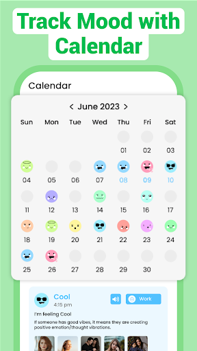 The Mood Monitor app - diary with lock daily journal 2023 provides you with a calendar view to keep track of your mental health on a daily basis. From the calendar, you can select a date to open, edit, and delete the memory of that specific day. Moreover, mood notes and mood track also give you a complete report of your moods.