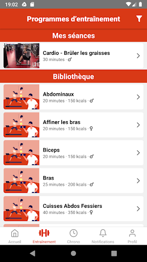 "Apa yang harus saya lakukan untuk menurunkan berat badan?"Untuk mengambil otot?»Cari berpuluh -puluh program dan sesi yang diperibadikan mengikut seks dan matlamat anda.Dengan kumpulan otot: "Apa latihan untuk menggosok glutes?"Untuk membangunkan jisim pektoral?»Mengakses perpustakaan intuitif 250 latihan terperinci dengan papan anatomi interaktif kami.