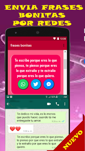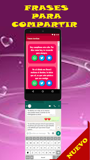 Life is very short, reason enough to see things with optimism and let that special person know how much you appreciate her. With this application you can give words that come from the heart for him or her. With just two seconds press the phrase and mark it you have the option to send these messages to your beloved or loved one at any time of your day.