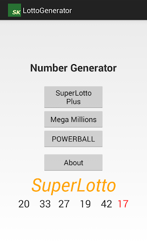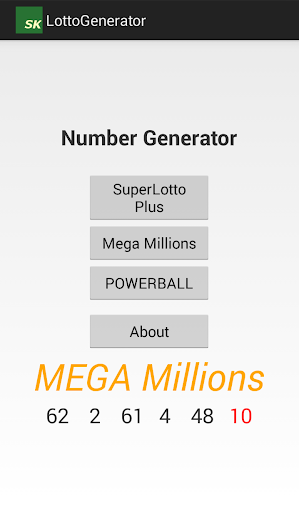 This application generates random numbers for "SuperLotto Plus", "MegaMillions", "PowerBall".