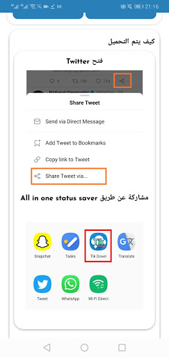 The easy way is to enter any site you want to download a video from, for example Instagram, Facebook or Twitter, copy the link for the video you want to download, then go to the TikDown application and choose the platform in which the video is located, then paste the link in the box to put the download links, then click On download.