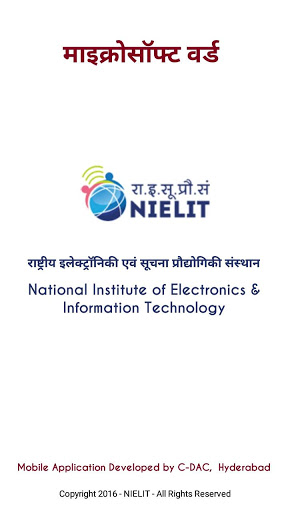 This app introduces the readers to the "Basics of Word Processing" in Hindi language. This mobile app can be used to access Word Processing Basics in offline mode sourced from e-content for Course on Computer Concepts (CCC) offered by NIELIT, an autonomous body under MeitY, Government of India. It contains various modules namely Creating a Blank Document, Working with Fonts, Creating a Table, Adding Header and Footer, Printing a document