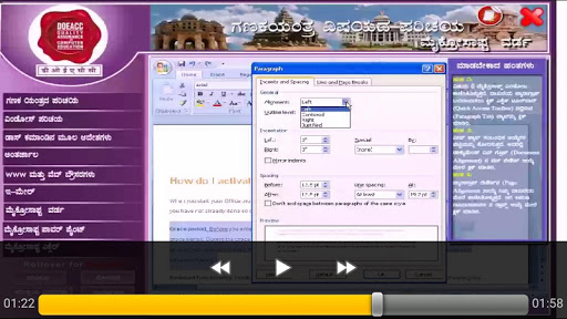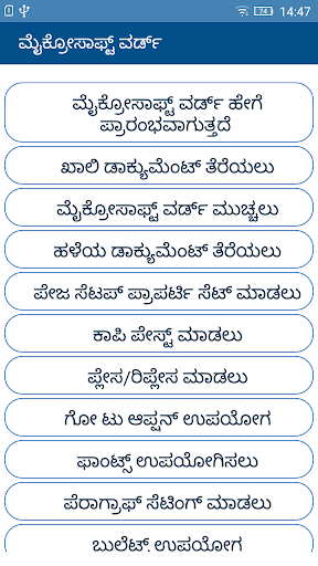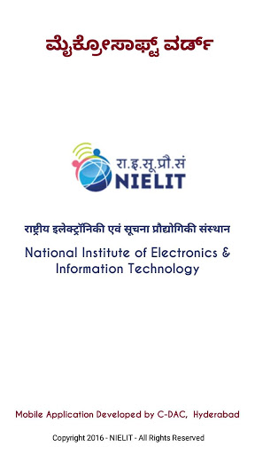 This app introduces the readers to the "Basics of Word Processing" in Kannada language. This mobile app can be used to access Word Processing Basics in offline mode sourced from e-content for Course on Computer Concepts (CCC) offered by NIELIT, an autonomous body under MeitY, Government of India. It contains various modules namely Creating a Blank Document, Working with Fonts, Creating a Table, Adding Header and Footer, Printing a document