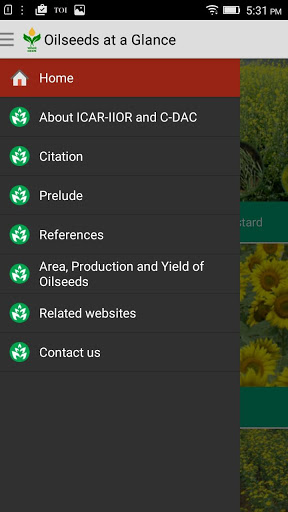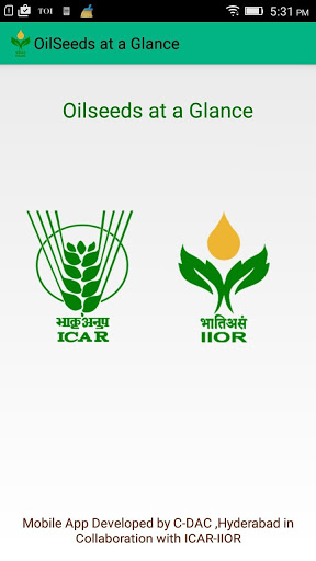 The mobile application on “Oilseeds at a Glance” is an initiative to reach the wider section of stakeholders through ICT from IIOR. This mobile app is the result of collaborative effort of ICAR-IIOR, and C-DAC provides a comprehensive information about 9 oilseed crops viz., Groundnut, Rapeseed and Mustard, Soybean, Sunflower, Safflower, Sesame, Niger, Castor and Linseed. There are 6 sections for each crop: Crop information, Released varieties and hybrids, State-wise preferred varieties and hybrids, AICRP centres contact information, ICAR seed Project centres dealing with oilseed crops, Mandis/selling markets for each state. In crop information section, the user can have the information on crop particulars like its scientific name, local names, major growing states, climate, duration, sowing season, crops suitable for intercropping, Recommended dose of fertilisers (RDF), major diseases and pests, harvesting, yield, cost of cultivation, MSP etc.