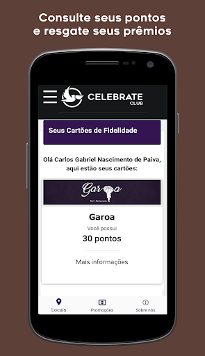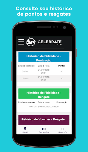 Seu cartão fidelidade agora é digital, a forma mais prática de acumular pontos e trocar por benefícios em seus estabelecimentos favoritos. Com o aplicativo da Celebrate Club você poderá consultar seus pontos, resgatar seus benefícios e receber promoções e vantagens de diversos estabelecimentos.