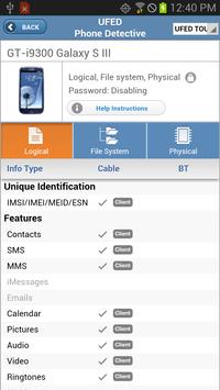 The UFED Phone Detective mobile app is a fast, easy way to view forensic extraction and decoding capabilities, as well as connectivity methods, for any mobile device profile supported by UFED 4PC/Touch/Classic.