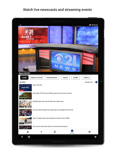 The CBS 21 News News app delivers news, weather and sports in an instant. With the new and fully redesigned app you can watch live newscasts, get up-to-the minute local and national news, weather and traffic conditions and stay informed via notifications alerting you to breaking news and local events.