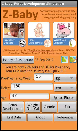 Z-BABY: Software for pregnancy due date, fetus development simulation & weight gain during pregnancy.