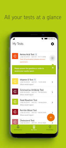 The cerascreen app supports you with your health-conscious lifestyle and guides you through the entire test process: You activate your cerascreen® test via the app with the test ID and receive updates on the status of the submitted sample directly from our laboratory. After the successful evaluation of the sample in the certified specialist laboratory, you can access your test result directly in the app. The measured values are explained to you in a way easy to understand. Based on your measured level you will also receive recommendations for further action and valuable information about nutrition, exercise and health.