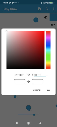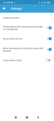 This hugely easy sketchbook drawing app for quick sketches provides many useful functions like Undo/Redo, changing the background color, or even using an image as the background. You can optionally make the app prevent the device from falling asleep too. You can also change the brush size, or use an eraser, if you messed something up. It supports inserting colors either by selecting it on a huge palette, or by entering the colors hex code.