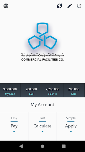 Welcome to Commercial Facilities Company’s (CFC) Android app. This newly designed app provides ease and mobility to its users when dealing with Commercial Facilities Co. and its services. You can obtain loan, pay installments and review your account details all securely and conveniently.