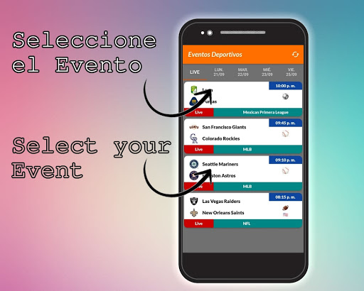 Con nuestro app podrás estar al día con todos los eventos deportivos; y te notificaremos los eventos deportivos mas importantes del día.