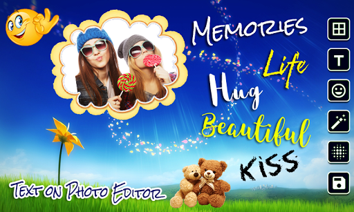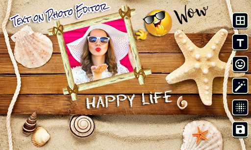 Text on photo is complete Text and Photo editor which has lot of edit options such as Text Size, Text Color, Text Fonts, Photo Frames, Stickers, Color Filters and Photo Overlay Effects etc., This app include beautiful frame backgrounds and amazing photo effects provided.