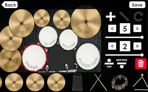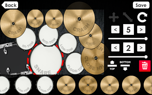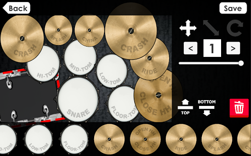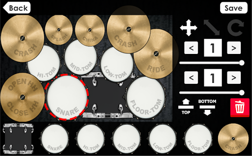 In Mr Drum 2 you can : Move to top/bottom , Move , Resize , Rotate , Set Volume , Set Sound , Add/Remove Drums