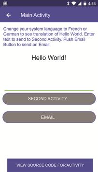 1. Main Activity: where you can change system languages, link to another activity and send emails with the click of a button