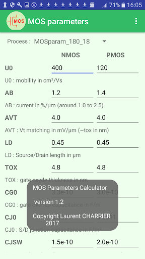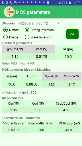 This application "MOS" calculator" is dedicated to analog CMOS design.