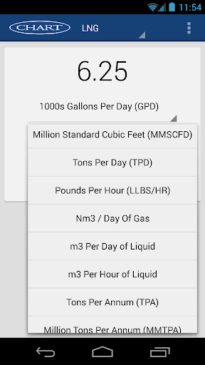 This APP is to provide a quick conversion tool between the most frequently used capacity measurements in the burgeoning LNG liquefaction and natural gas processing industries. It is a useful tool for engineers of all disciplines; process, mechanical, project, as well as purchasing and sales professionals and other stakeholders in the aforementioned industries. With each LNG calculation the app offers the user the choice to find out more about the optimum liquefaction plant solution recommended by Chart. The app also includes conversions for the most frequently used measurements of Energy, Temperature, Pressure and Volume so that users have all the conversion tools they require in one place.