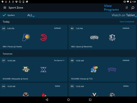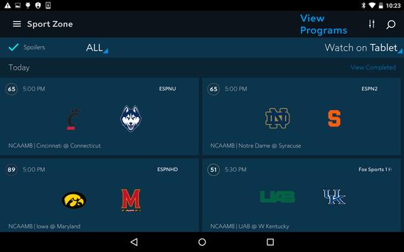 - Quickly find all the live games currently playing, and get real-time scores. You can also use the Spoiler button to hide scores of games you’re recording for later viewing.