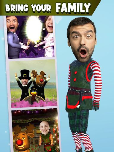Celebrate xmas in a fun way and surprise your loved ones. We offer you different options for your craziest greeting videos: Put your face on Santa Claus, Grinch, a reindeer or snowman and show it anywhere as if it were real. Record video or take photos and add carols or music. Make Santa and the Elves dance. Create snow effects. Save or share the videos or photo.