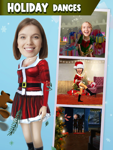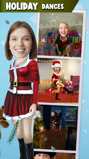 Choose your favorite scene, place your face into the animations and turn yourself into a 3D animated character. Create funny videos with your face in! Celebrate 2021! Create 3D model. Dance with an elf, reindeer or snowman. Discover various free funny dances. Select between 7 original backgrounds and jingles. Record your character dancing and share it.