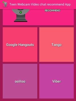 Let's find webcam teen video chat, online dating, chat rooms, chatroulette or flirt. Are you bored, sad or lonely? Are you looking for something new and fresh? Have you already installed some video chat programs like Skype, but you do not have friends with whom you can communicate using them? All your friends are offline or busy? Or do you have a while and looking for a senseless talks or just want to kill time? Now is a great time to learn how to video chatting work on webcam video chat program so you can keep in touch with friends and family, no matter where in the world they happen to be. Webcam Teen Video Chat Review will review apps for teen Video chat on social network ,chat online with other teens and meet new teenage friends for dating. You can have a Video chat! This application guide you Teen Webcam (Video chat) and the best Teen Webcam (Video chat) you must have such as Google Hangouts, Tango, ooVoo, Viber.