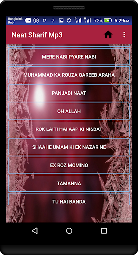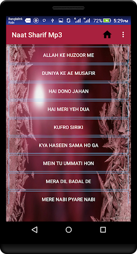 Naat Sharif Mp3 contains amazing Naat recitation by the great reciters among the world. No need any Internal (Inside app) download for listening these beautiful Naat Sharif which are listed below.