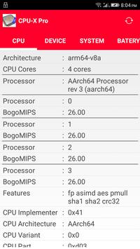 SoC (System On Chip) name, architecture, clock speed for each core ;