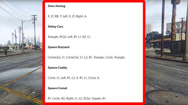 Now you will Download GTA 5 cheats: With it you can get : Spawn Parachute Slidey Cars Slow Aiming And many other truc for Grand theft Auto Sand andreas and 5 So if you love it Download this game free cheats.