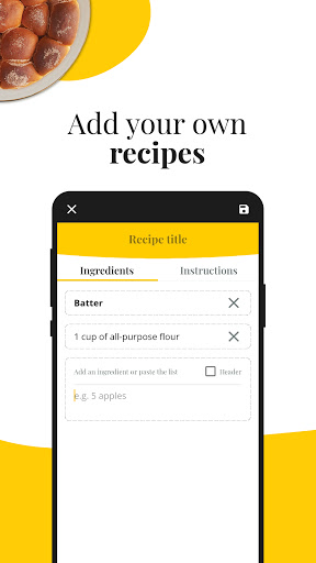 Create your personal cookbook filled with all your recipes. Never be afraid of losing them again - all recipes will be saved in the cloud on your personal account, so even when you change your phone, all your recipes will remain in your pocket.
