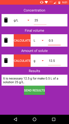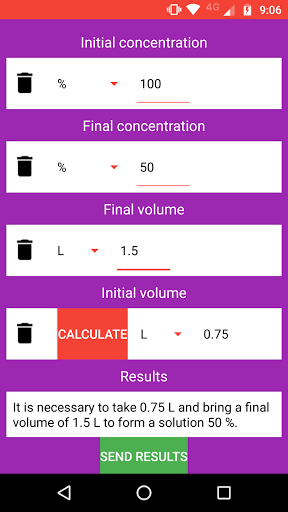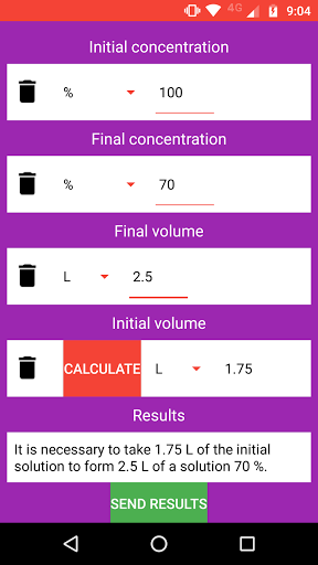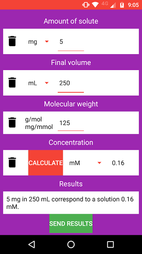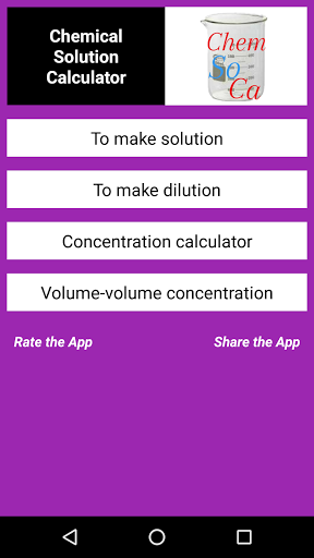 Kalkulator Solusi Kimia adalah aplikasi yang memungkinkan Anda melakukan perhitungan konsentrasi, volume solusi dan jumlah zat terlarut dengan mudah dan mudah.Ini memungkinkan untuk menghitung nilai yang diperlukan untuk membuat solusi seolah-olah untuk pengenceran solusi stok.Ini juga mencakup interpretasi hasil untuk membuatnya lebih praktis.Situs Ini Berguna untuk Siswa Sains dan Profesional dan Peneliti yang membutuhkan perhitungan dengan cepat.