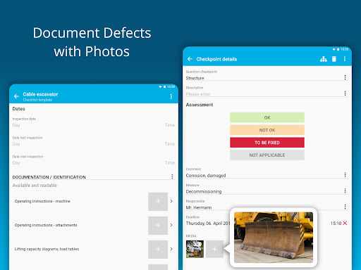 This is the CHEQSITE app for inspecting construction machinery in accordance with DGUV, OSH & HSE PUWER regulations. Includes among others DGUV 500-100 Chapter 2.12.