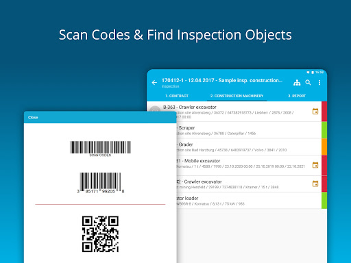With the CHEQSITE applications you do on-site workplace and asset inspections much faster and more efficiently. Import your customer data from the address book or previous inspections. Use preinstalled DGUV checklists or customize the templates according to your specific needs as suggested by national OSHA, HSE, PUWER, ANSI, EHS, and further legal and company specific regulations. Assign codes / IDs to equipment and add defects or hazards. At the next inspection you simply scan them, and the equipment information is automatically applied.