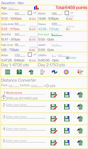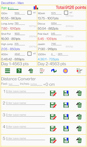 -Save up to 10 sets of results in each calculator to keep track of your competitors or for comparison to previous competitions.