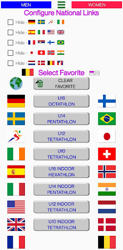 Age group events for UK, IRE, USA, ESP, ITA, SWE, FRA, SRB, FIN, BRA, JPN, SUI, GER, NOR, IND, NED, DEN, BEL, CZE, SVK, AUT, BUL and NACAC plus World Athletics U18 Men’s Octathlon.