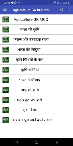 To increase your GK(General knowledge) of Agriculture this Agriculture quiz will be better helpful for you. It has above 1000 questions you can solve or learn here. Agriculture Quiz application is with negative marking can be also very helpful to prepare for competitive exams.