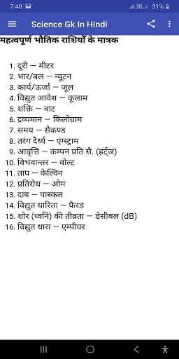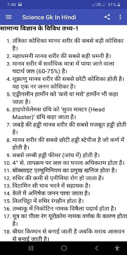 Internet connectivity is not required at all to use this app. General Science in Hindi contains Daily Life Science Questions with answers in Hindi. It contains about 3000 detailed questions and 10000 MCQ type science questions of Daily Life.