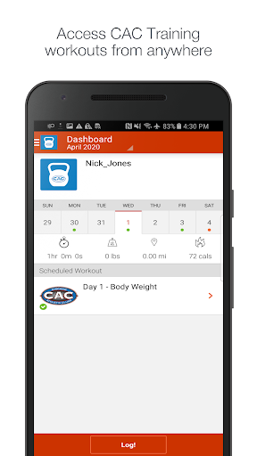 Log your CAC Training workouts from anywhere with the CAC Training workout logging app! View your completed and upcoming scheduled workouts. Track your progress and get the most out of your CAC Training workouts!