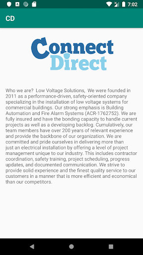 The Connect Direct App allows you to contact us and see information about our company.