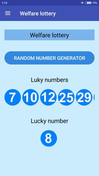 With this free application you can pick random numbers for the games Welfare lottery, Welfare lottery Lucky 7, 3D lottery, Happy 8, P5, P3, Super lotto, Sports lottery lucky 7, Lotto 5 out of 22, Lotto 7 out of 31 and each lotto game.