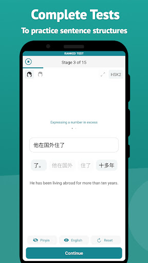 Take tests to study everything from sentence structures, grammar patterns and characters, all within a particular HSK level. Save test results to record and measure your progress as your proficiency improves.