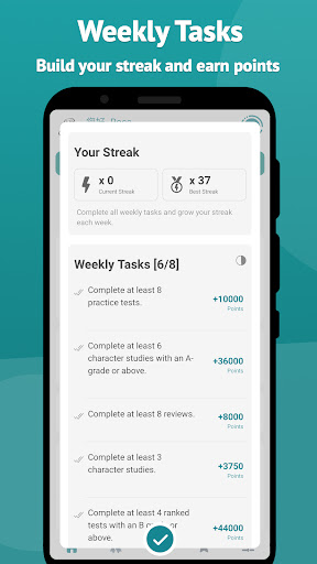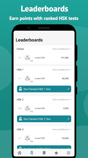 Earn points with ranked HSK tests and compete for the top leaderboard position! Each HSK level has its own leaderboard enabling you to compete at your level.